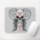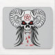 This wicked skull has ram horns and blood-dripping fangs with red pentagram and glowing eyes.