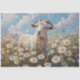 A charming decoupage design featuring a ram standing peacefully in a field of daisies, blending rustic farm life with the soft beauty of wildflowers.