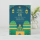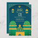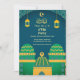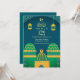 This modern elegant Ramadan Iftar party invitation features golden Arabic "Labbaik ya Rasool "calligraphy and islamic golden pattern, cute hand drawn colourful mosques, islamic lanterns and gold crescent with star on dark teal green background. You can easily change the background colour, text, fonts,colours or remove by clicking Zazzle's customisation tools.