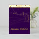 This elegant foil card features intricate golden foil line art depicting serene sand dunes, graceful camels, a crescent moon, and twinkling stars — all capturing the essence of the holy month of Ramadan. The design is set against a rich, dark purple background, enhancing the gold foil elements with a touch of sophistication and luxury. The front of the card showcases the graceful script, "Ramadan Mubarak," in an elegant, flowing font, perfect for the festive season.