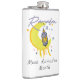 The flask itself is fine. It’s a cheap flask, obviously bought in bulk, however am prepared to overlook that. Given that it is a personalized item, I would have liked to have seen gift boxing instead of the generic packaging. Terrible printing, and/or quality. It’s a cheap, tacky vinyl. It is not cut straight and is also applied in a way that it is overhanging the bottom, causing the glue to catch on items and it will eventually roll and tear, damaging the wrap.