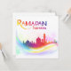 A design of a colourful mosque with lights and the words "Ramadan Kareem" written on it. The beautiful and vibrant image adds a festive touch. This design symbolises the joy and spirituality of the Ramadan season and the lives of Muslims during this time.