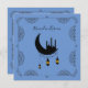 Silhouette for Ramadan with a mosque on a crescent moon and hanging lanterns. Floral border. Background colour may be changed.
