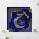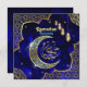 A beautiful and elegant islamic geometric border golden crescent blue Ramadan Mubarak greeting card. Design features a beautiful golden crescent, islamic hanging lanterns, geometric golden islamic corner border, golden mandala, golden stars on dark blue background. Send your love and wishes to your family, friends and loved one's by our beautiful and elegant greeting cards. You can change the text by clicking personalised this template.