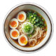 A realistic bowl of Ramen noodles with boiled eggs, green onions kitchen cabinet knob.