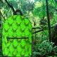 A thundering herd of rampaging green dinosaurs race across this fun backpack, in shades of green.