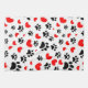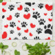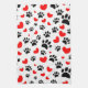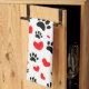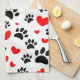 Random Cartoon Dog Paw Prints And Red Hearts Tea Towel