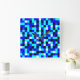 Random Checkered Pixel Art - Blue & White Square Wall Clock
