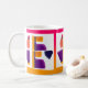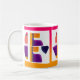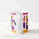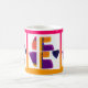 Sip your drink from a mug designed with colourful random geometric shapes.