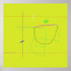 Abstract lines and shapes are scattered across a lime green background, creating a sense of randomness and spontaneity. Thin, multicolored strokes intersect and curve, forming geometric and freeform patterns.