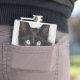 This cute flask features, Ranger, our adorable black kitten. Ranger is seen with his eyes wide in surprise at being caught licking his little paw. Little kitty paw prints wander aimlessly over the back of this flask ending with a "Burp!" With Ranger's tongue sticking out ready for another lick and his adorable face, this flask is perfect for everyone.