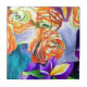 An original watercolour painting design of colourful yellow and orange ranunculus Spring flowers and purple iris flowers. This colourful and bright vivid floral design is from an original painting. Original and beautiful, this orange and purple botanic design would liven up any environment.