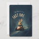 Get ready to race into a memorable first year with our "Rapid Racer Rabbit" birthday party invitation. This invitation is the perfect starting line for your little one's big day. The front side features an intrepid little rabbit, gripping the steering wheel of a classic rustic orange toy race car, his fur a soft blend of fawn and chestnut against the moody backdrop of Prussian blue and navy, with hints of cool grey adding depth and intrigue. Flip to the back and you'll find the playful phrase "[Name] is a fast one" in a creamy ecru script, set against a deep oceanic blue canvas that captures the essence of speed and excitement. This invitation is sure to spark the imagination of guests and set the tone for a day full of fun and festivity!