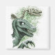 A jurassic smile from the deinonychus (often mischaracterised as a velociraptor) with jungle green patterns framing the dinosaur skeleton in the background. By Paxdomino.