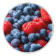 This design features a close-up image of raspberries and blueberries, which are tasty and nutritious fruits. Raspberries are red and blueberries, as the name suggests, are blue.