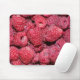A pile of red yummy raspberry berries. Closeup view. Raspberry symbolises love, patience, protection and fertility. Gifts for everyone. Mousepad for anyone
