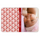 This pattern features a modern twist on an arabesque pattern with curving lines and a blend of coral, pink, and red colours.