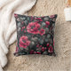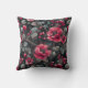 Raspberry, burgundy flowers on dark grey cushion