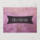 This simple, friendly postcard is perfect for dropping a note to anyone you've been missing. The background was covered in a subtle grunge textured design in shades of wine and raspberry pink with some hints of brown. The message, "I Miss Your Face" is rendered in a modern, casual font. Both the message and the font can be changed to whatever you'd like it to say.