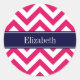 Raspberry Lg Chevron Navy Blue Name Monogram Classic Round Sticker