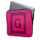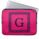 Raspberry, Navy Blue Greek Key #1 Framed Monogram Laptop Sleeve