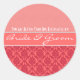 Raspberry on Damask Sticker Shown on Pink Coral But You Choose Sticker Colour find Your wedding colours here- White Damask Floral Sticker Save the Date and Wedding Gift Stickers You Choose the Background Colour and Font Colours You Will find your Wedding colours here in a Most Elegant White Damask