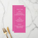 Add a pop of color to your table with this stylish menu card in bold raspberry pink and white. Perfect for a modern fun filled celebration.