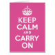 Raspberry pink and white "Keep Calm and Carry On" modern version of classic poster.