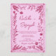 Raspberry Pink QR Code Drawn Floral Photo Wedding Invitation