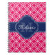 Raspberry Pink Wht Moroccan Pattern Navy Monogram Notebook