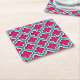 Raspberry Teal White Moroccan Quatrefoil #5DS Square Paper Coaster