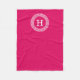 Raspberry Wht Greek Key Rnd Frame Initial Monogram Fleece Blanket