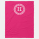 Raspberry Wht Greek Key Rnd Frame Initial Monogram Fleece Blanket