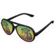 Black silhouette lion's head over a rasta coloured red, yellow and green sunset background sunglasses