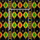 Awesome African geometric design fabric patterned with red, yellow and green diamonds on black