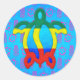 Combining elements of two separate island cultures, the Hawaiian and the Rastafari Movement, to create a unique symbol, a Rastafari Honu turtle with a turquoise blue colour inlay. Ocean blue background with pink Hawaiian Honu sea turtles and tiki mask.