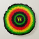 Rasta flag coloured tie-dye effect pillow with a customisable monogram circle on the front