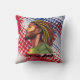 Rastafarian man with dreadlocks on background of grunge print design with red, blue and white colours. Brush strokes pattern.