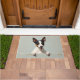 The soft sage grey background adds a calm and modern touch, perfect for welcoming entryways. Designed with extra space at the top and bottom, it allows easy personalisation with names, welcome messages, or custom text—making it ideal for unique dog-themed doormats and thoughtful gifts.