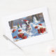 Rat Terrier Running in Snow with Christmas Hat Rectangular Sticker