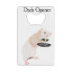 This modern, surreal credit card style bottle opener features my portrait of a rat waiter carrying a tray of wine glasses on a plain white background, and the editable text “Dad’s Opener” The portrait is based on a real life pet rat Reilly. This bottle opener would make an useful gift for Father’s Day.