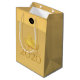 Elegant design with golden paper-cut of a rat with fruits (+ the same paper-cut in grey forming drop shadow. Design on medium gift bag with Large 2020, Year of the Rat and monogram onto black round + same background image in back. You can easily change text (font, colour, size and position) by clicking the customise button. Available in large size. Matching greeting card , postcard, invitation and more.