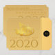 Elegant design with golden paper-cut of a rat with fruits (+ the same paper-cut in grey forming drop shadow you can delete if you want). Design on horizontal flat party invitation card with Large 2020, Year of the Rat and monogram onto black round + same background image in back with small rat paper-cut. You can easily change text (font, colour, size and position) by clicking the customise button. Matching greeting card, postcard and more... Perfect for a personalised Chinese New Year of the Rat 2020.