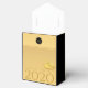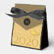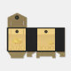 Elegant design with golden paper-cut of a rat with fruits (+ the same paper-cut in grey forming drop shadow. Design on tent favour box card with Large 2020, Year of the Rat and monogram onto black round + + Black and decorative pattern background, You can easily change text (font, colour, size and position) by clicking the customise button. Available in other styles: classic cube, gable, take-out. Matching postcard; greeting card, invitation, sticker and more. Perfect for a personalised Chinese New Year 2020.