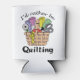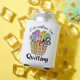 Quilting basket holding fabric and tools with "I'd rather be quilting"
