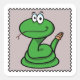 Fun green cartoon rattlesnake in a coiled position and his tongue sticking out.