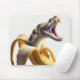 A snake's head is seamlessly blended with a peeled banana, creating a surreal and imaginative fusion