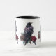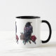 A coffee cup or mug, or any hot or cold beverage, with a beautiful raven and roses. A pretty kind of mystical magical cup.