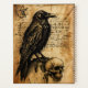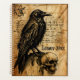A vintage-looing journal page from a sorcerer's hand-written book of spells, with an illustration of a raven, a strange-looking human skull, and some arcane symbols on a background of old parchment makes a wonderful, Gothic planner.