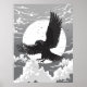 Raven And The Moon, Scary Halloween style illustration of the full moon and a raven at night.